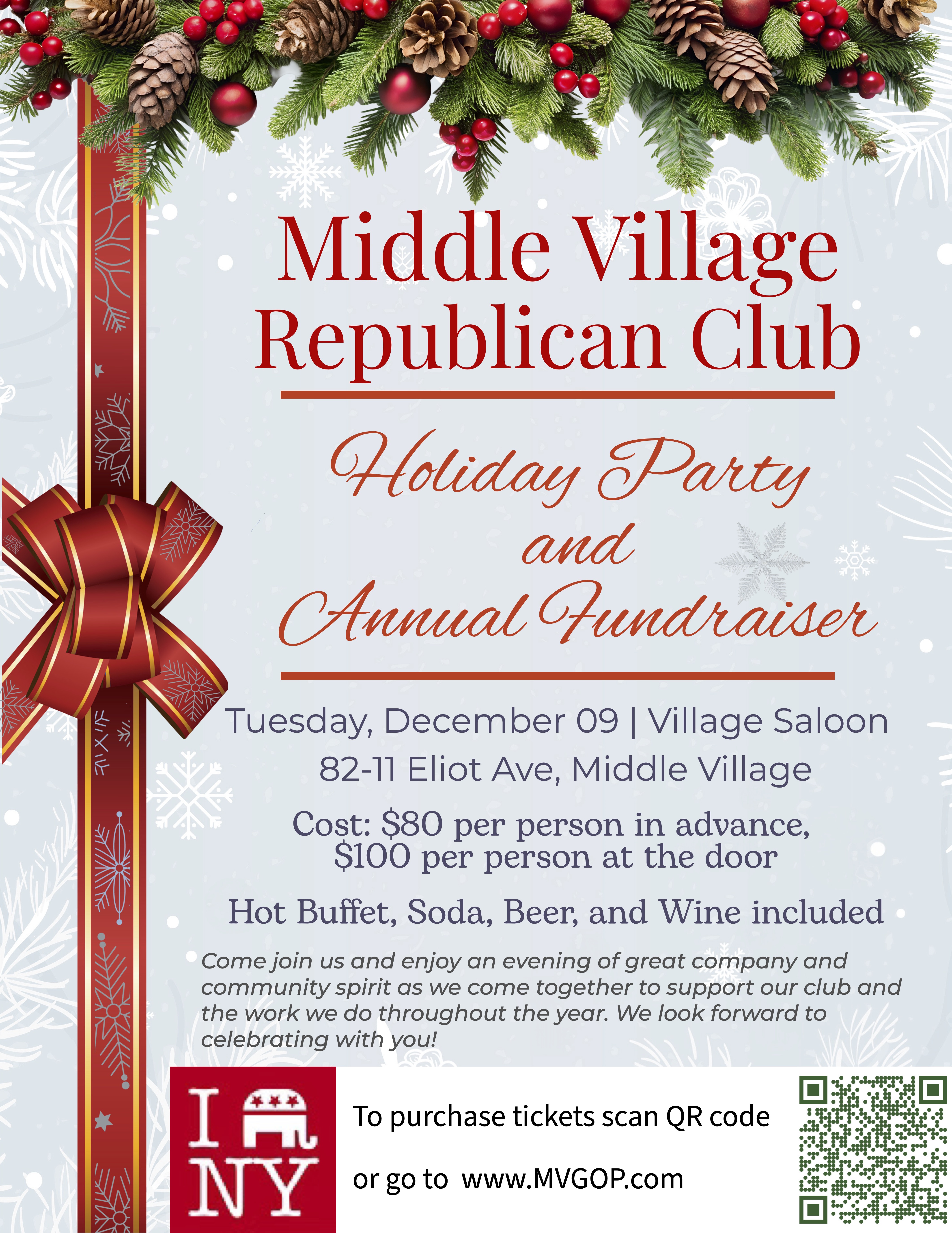 Celebrate the holiday season and join your fellow Republicans at our Holiday Party and Annual Fundraiser.